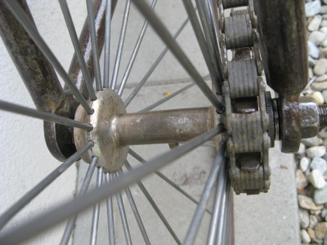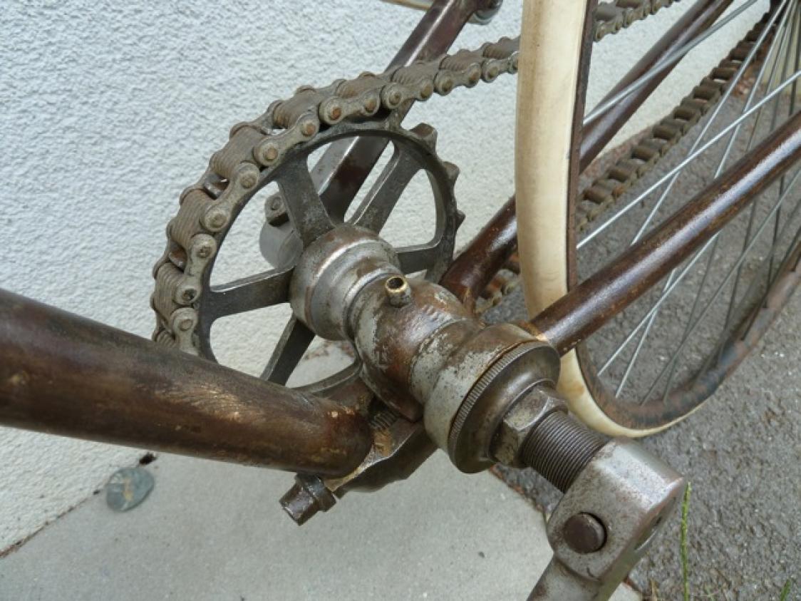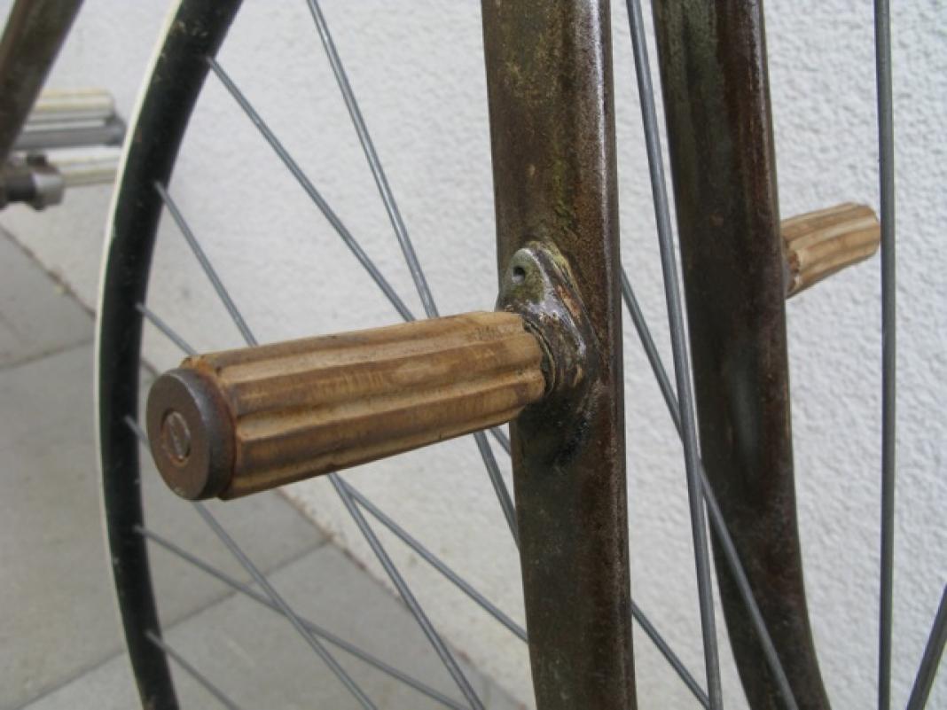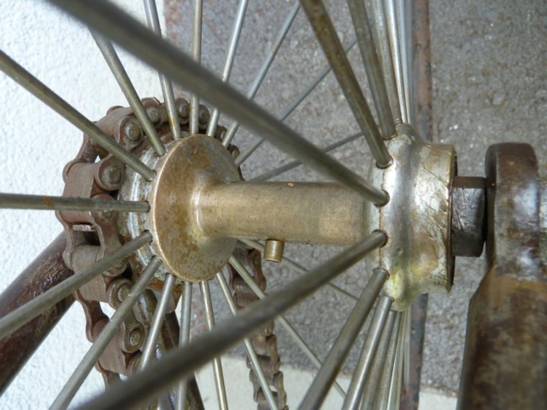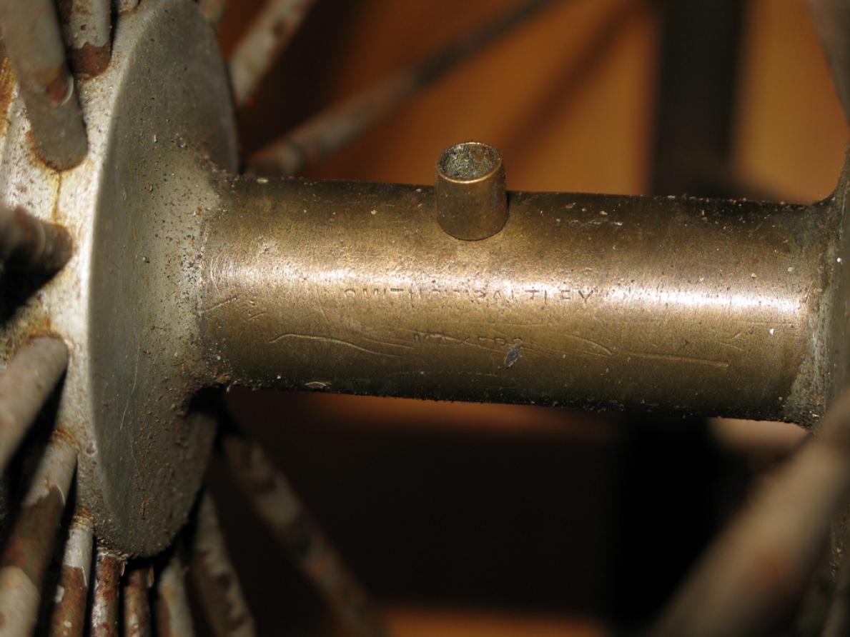 This bike has hubs made by Thomas Smith, so we attribute it to this maker. But it could have been built by another firm, who used only the Thomas Smith hubs. This happened a lot, most firms delivered parts when a smaller producer asked for it.